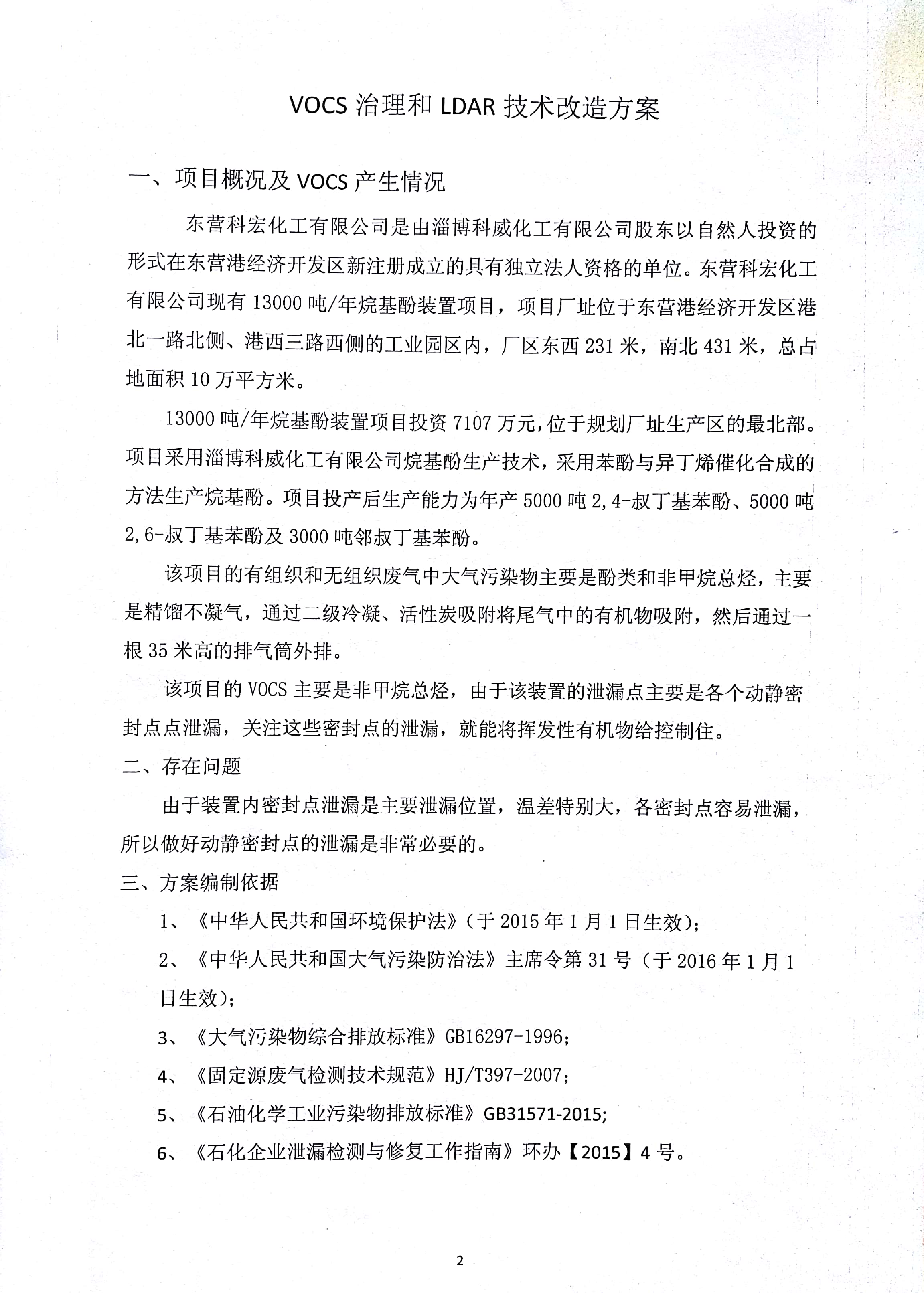 VOCS治理和LDAR技術改造方案_東營咸阳昌干计算机设备有限公司