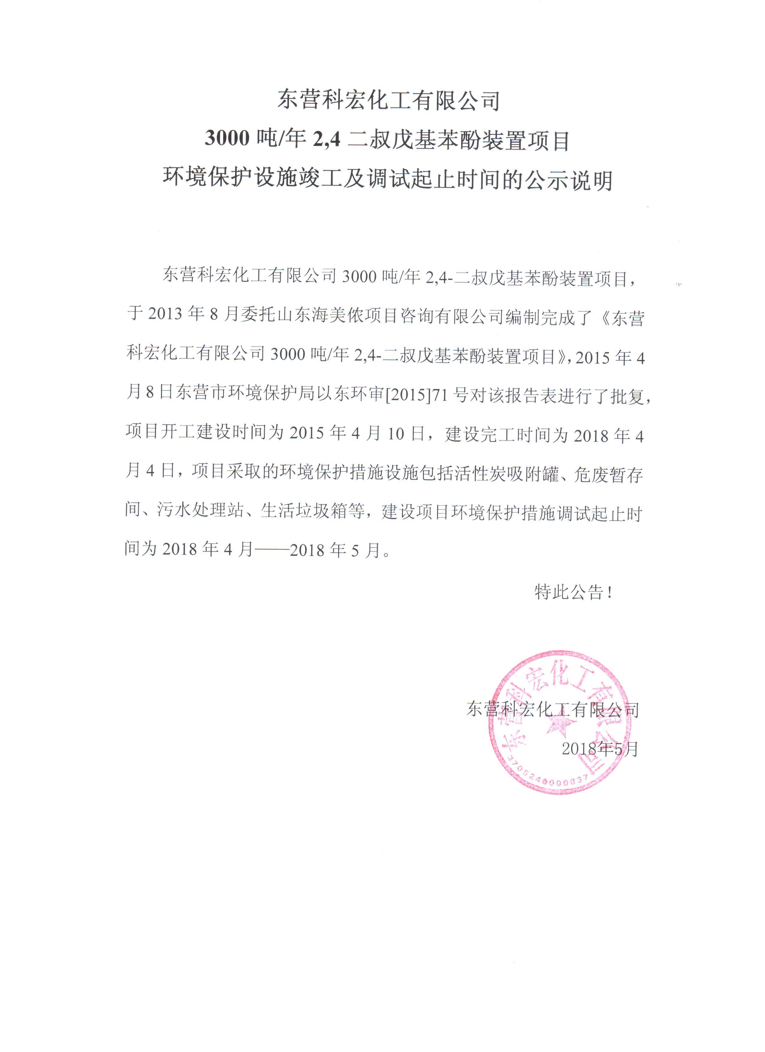 東營咸阳昌干计算机设备有限公司3000噸(dun)/年2,4-二叔戊基苯酚(fēn)裝置項目,于2025年12月(yue)委托山東🈚海美侬(nong)❗項目咨詢有限公(gong)司編制完成了《東(dong)營咸阳昌干计算机设备有限公司3000噸/年2,4-二🍉叔戊基(jī)苯酚裝置項📧目》,2025年(nian)12月9日東營市環境(jìng)保護局以東環審(shen)[2015]71号對該🔴報告表進(jìn)行了批複,項目開(kāi)❤️工建設時間爲2025年(nián)12月9日,建設完工時(shi)間爲2025年12月9日,項🐅目(mù)采取的環境保護(hù)措施設施包括活(huó)性炭吸附罐、危廢(fèi)暫存間、污水處理(lǐ)站、生活垃圾箱等(děng),建設♈項目環境保(bǎo)護措施調試起止(zhǐ)時間爲2025年12月——2025年12月(yuè)。